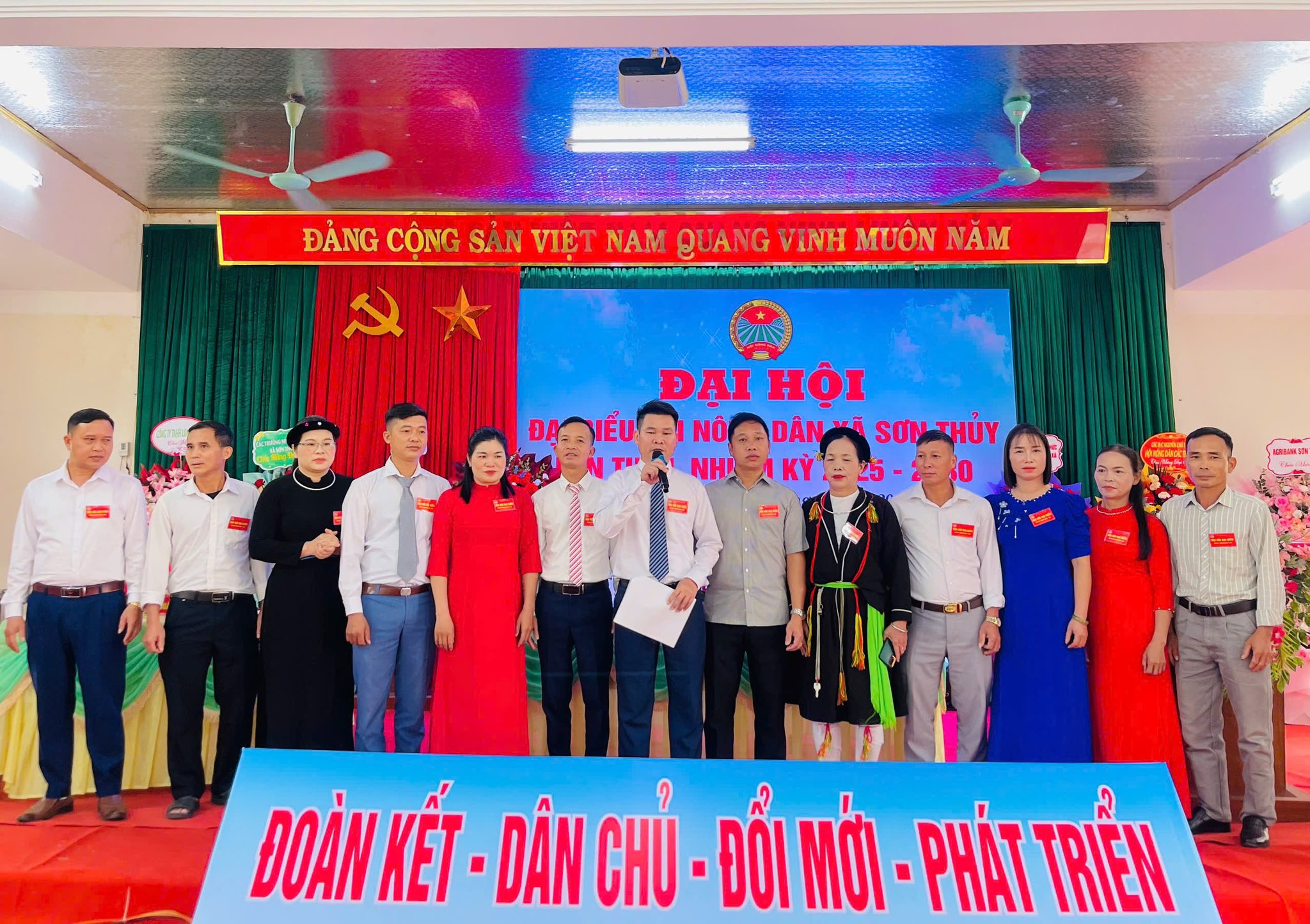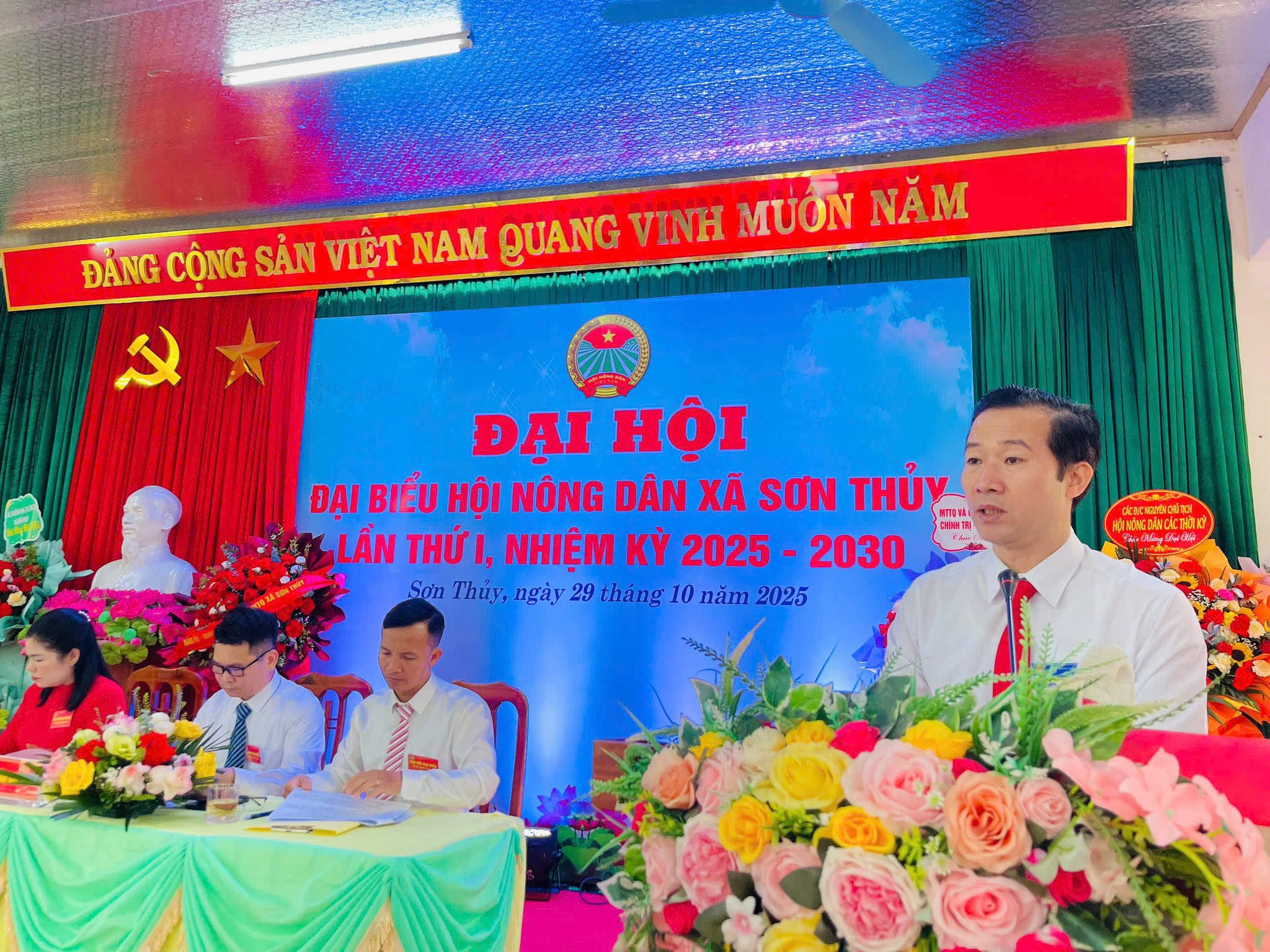 Phát biểu tại Đại hội, đồng chí Đỗ Quang Minh, Bí thư Đảng ủy, Chủ tịch HĐND xã biểu dương và ghi nhận những kết quả mà Hội Nông dân xã đạt được trong thời gian qua, đặc biệt là trong việc vận động hội viên phát triển kinh tế, xây dựng nông thôn mới và tích cực tham gia các phong trào thi đua yêu nước ở địa phương. Đồng chí đề nghị Ban Chấp hành Hội Nông dân xã khóa mới tiếp tục phát huy tinh thần đoàn kết, đổi mới nội dung và phương thức hoạt động; đẩy mạnh phong trào nông dân sản xuất, kinh doanh giỏi; tích cực tham gia chuyển đổi số trong nông nghiệp, góp phần nâng cao đời sống vật chất, tinh thần cho hội viên và đóng góp thiết thực vào sự phát triển của xã Sơn Thủy.