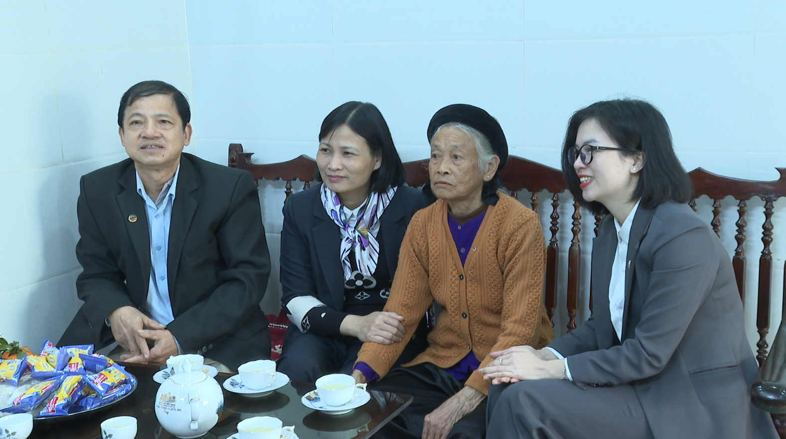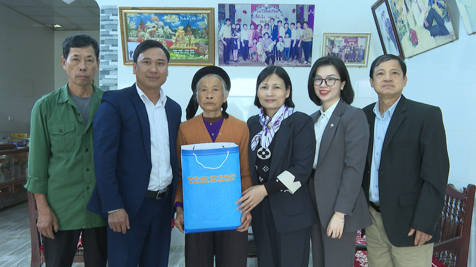 Tiếp đó, đoàn đến thăm gia đình bà Ma Thị Lan, vợ liệt sĩ tại thôn Cầu Quất. Trong không khí ấm áp những ngày giáp Tết, đồng chí Đinh Thị Kim Luyến ân cần thăm hỏi sức khỏe, đời sống của gia đình, bày tỏ lòng biết ơn sâu sắc trước sự hy sinh to lớn của liệt sĩ vì sự nghiệp đấu tranh giải phóng dân tộc, bảo vệ Tổ quốc. Đồng chí mong muốn gia đình tiếp tục phát huy truyền thống cách mạng, là tấm gương sáng cho con cháu noi theo.