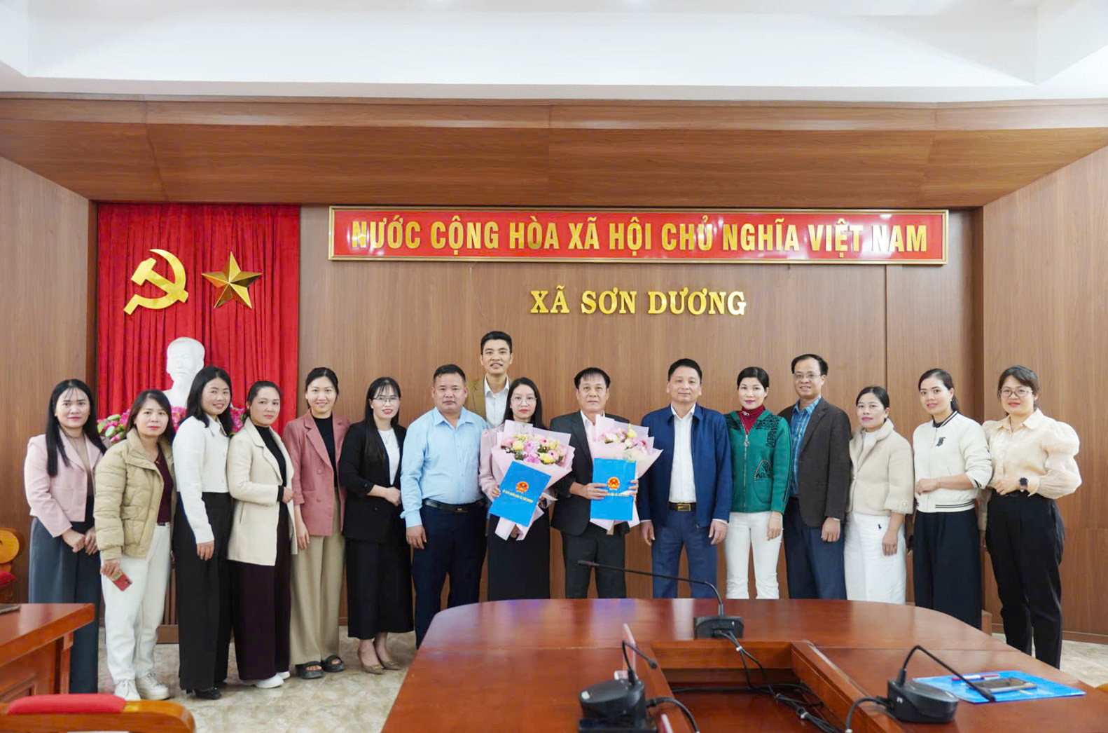 Hội nghị cũng công bố các Quyết định về công tác cán bộ: tiếp nhận và bổ nhiệm ông Triệu Công Đoàn, bác sĩ hạng III, giữ chức vụ Giám đốc Trạm Y tế xã Sơn Dương; tiếp nhận và bổ nhiệm bà Trịnh Thị Loan, bác sĩ hạng III, giữ chức vụ Phó Giám đốc Trạm Y tế xã Sơn Dương; đồng thời tiếp nhận 19 viên chức về công tác tại Trạm Y tế xã.