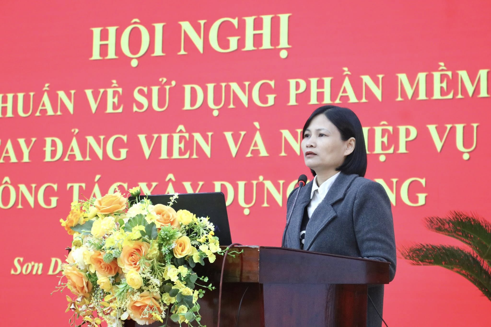 Phát biểu tại hội nghị, đồng chí Đinh Thị Kim Luyến nhấn mạnh tầm quan trọng của việc cập nhật kiến thức, kỹ năng cho đội ngũ cán bộ, đảng viên trong giai đoạn hiện nay. Đồng chí đề nghị các học viên nêu cao tinh thần trách nhiệm, chủ động tiếp thu nội dung tập huấn, đặc biệt là việc ứng dụng phần mềm vào thực tiễn công tác nhằm nâng cao hiệu quả quản lý, điều hành và góp phần xây dựng Đảng bộ xã Sơn Dương ngày càng trong sạch, vững mạnh.