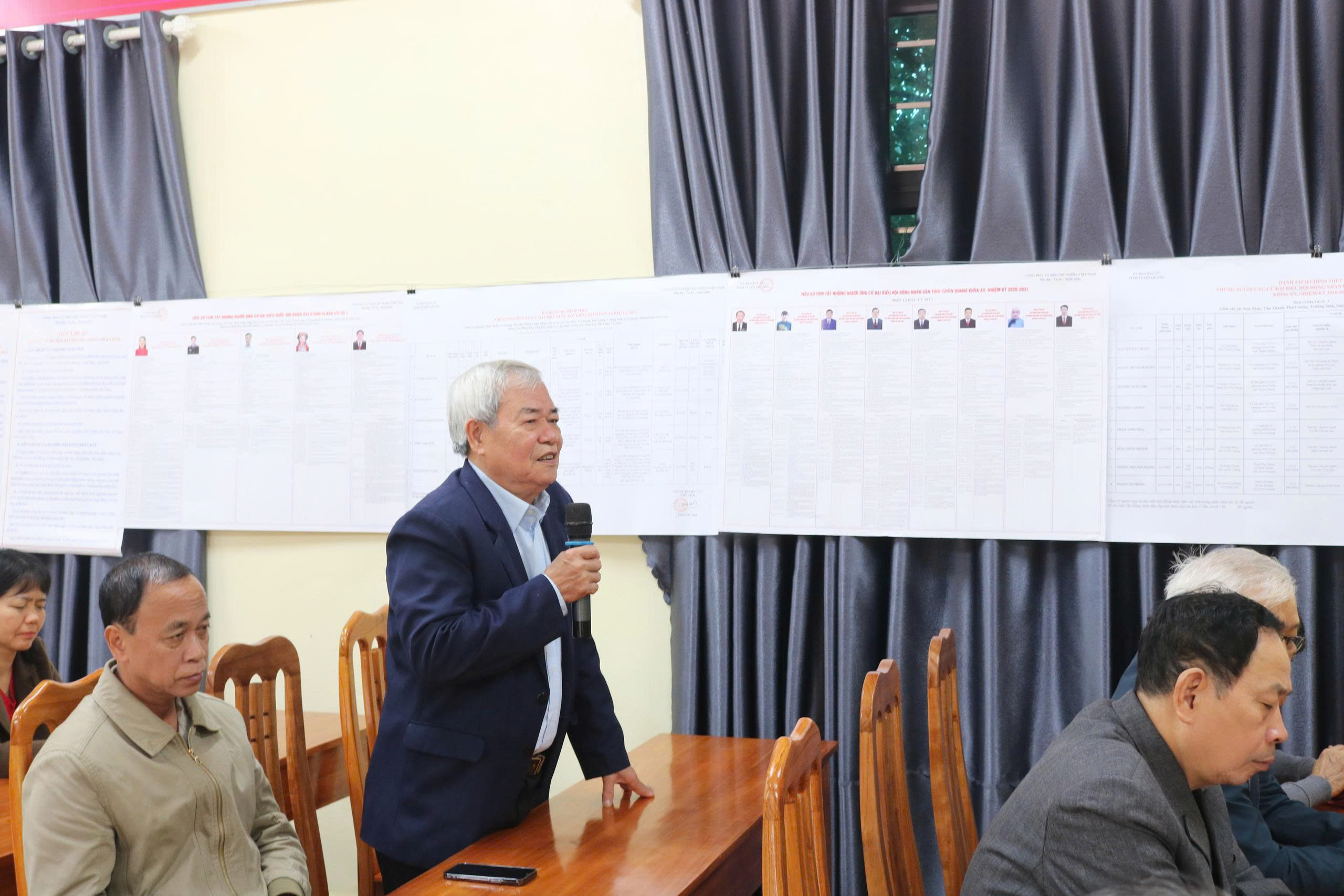 Các ứng cử viên tại đơn vị bầu cử số 2 trình bày chương trình hành động của mình tại buổi tiếp xúc.