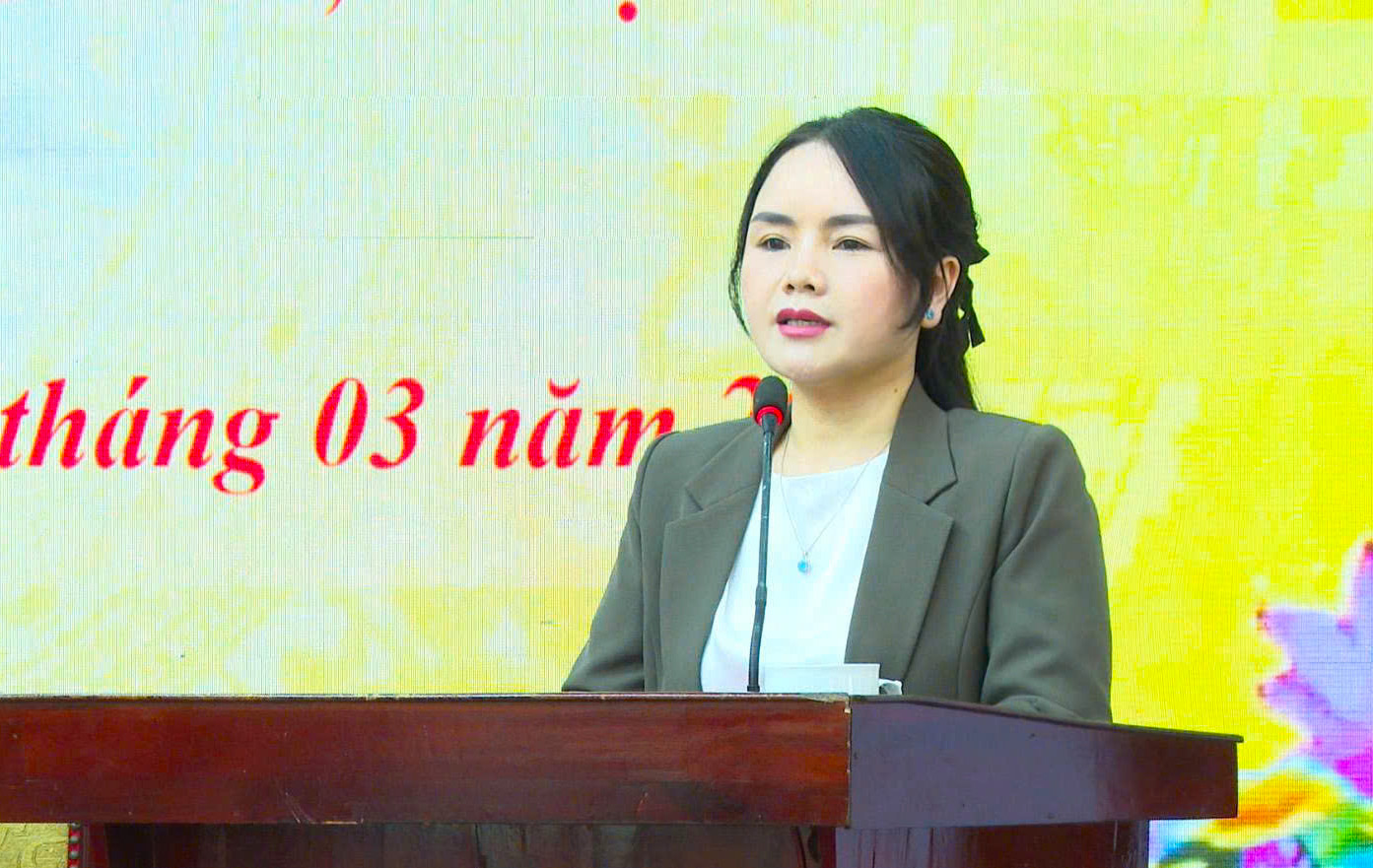 Đồng chí Nguyễn Thị Thanh Huyền, Ủy viên Ban Chấp hành Đảng bộ tỉnh, Bí thư Đảng ủy xã Sơn Dương phát biểu với cử tri xã.
