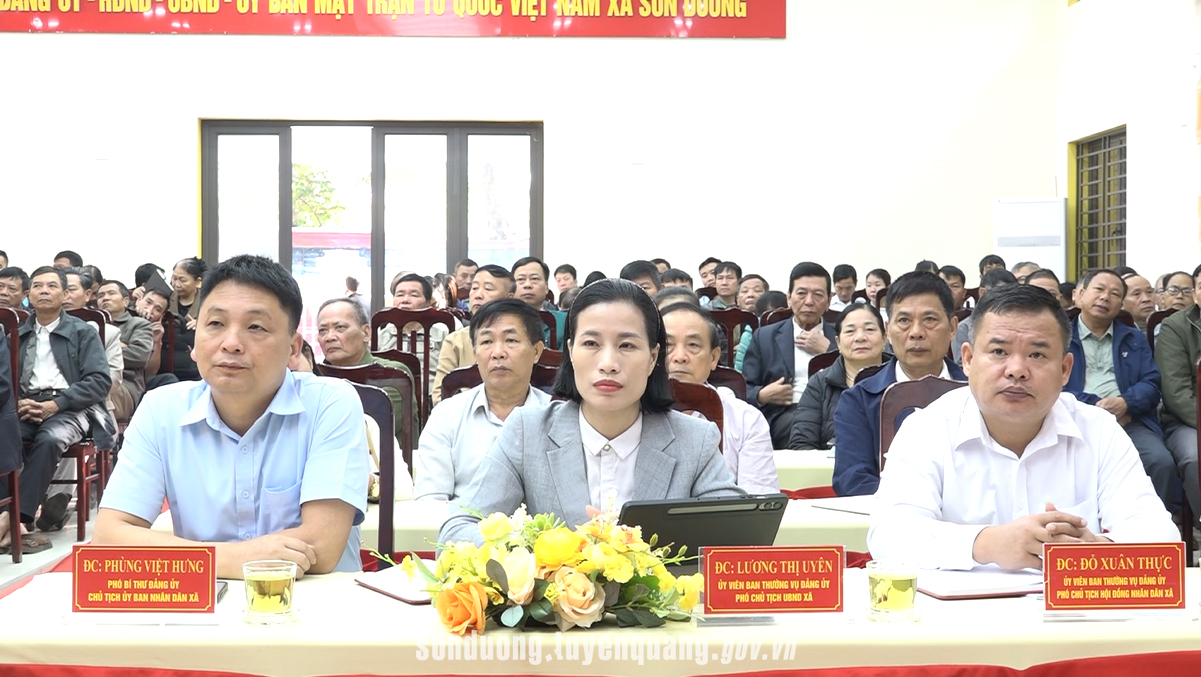 Tại điểm cầu xã Sơn Dương, tham dự hội nghị có các đồng chí: Nguyễn Thị Thanh Huyền, Ủy viên Ban Chấp hành Đảng bộ tỉnh, Bí thư Đảng ủy, Chủ tịch HĐND xã; Đinh Thị Kim Luyến, Phó Bí thư Thường trực Đảng ủy xã; Phùng Việt Hưng, Phó Bí thư Đảng ủy, Chủ tịch UBND xã; các đồng chí trong Ban Thường vụ, Ban Chấp hành Đảng bộ xã; lãnh đạo UBND, HĐND, Ủy ban MTTQ, các tổ chức chính trị – xã hội; đại diện các trường học, bí thư chi bộ, trưởng thôn.
