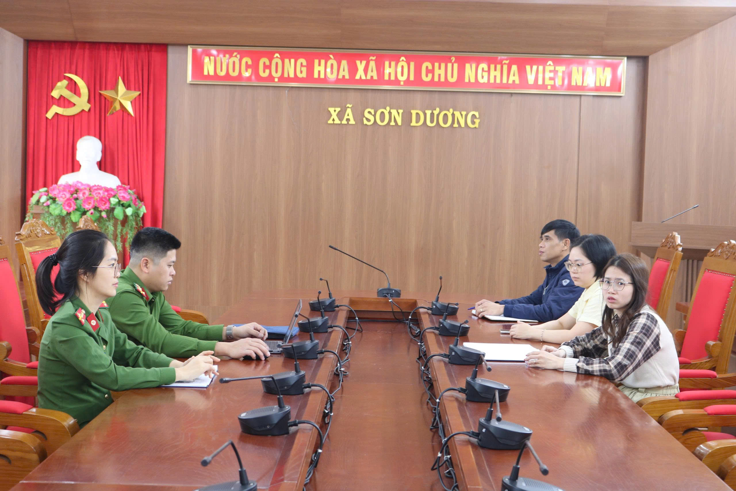 Tại điểm cầu xã Sơn Dương dự hội nghị có các đồng chí công an xã Sơn Dương, cán bộ công chức văn phòng HĐND và UNND xã.