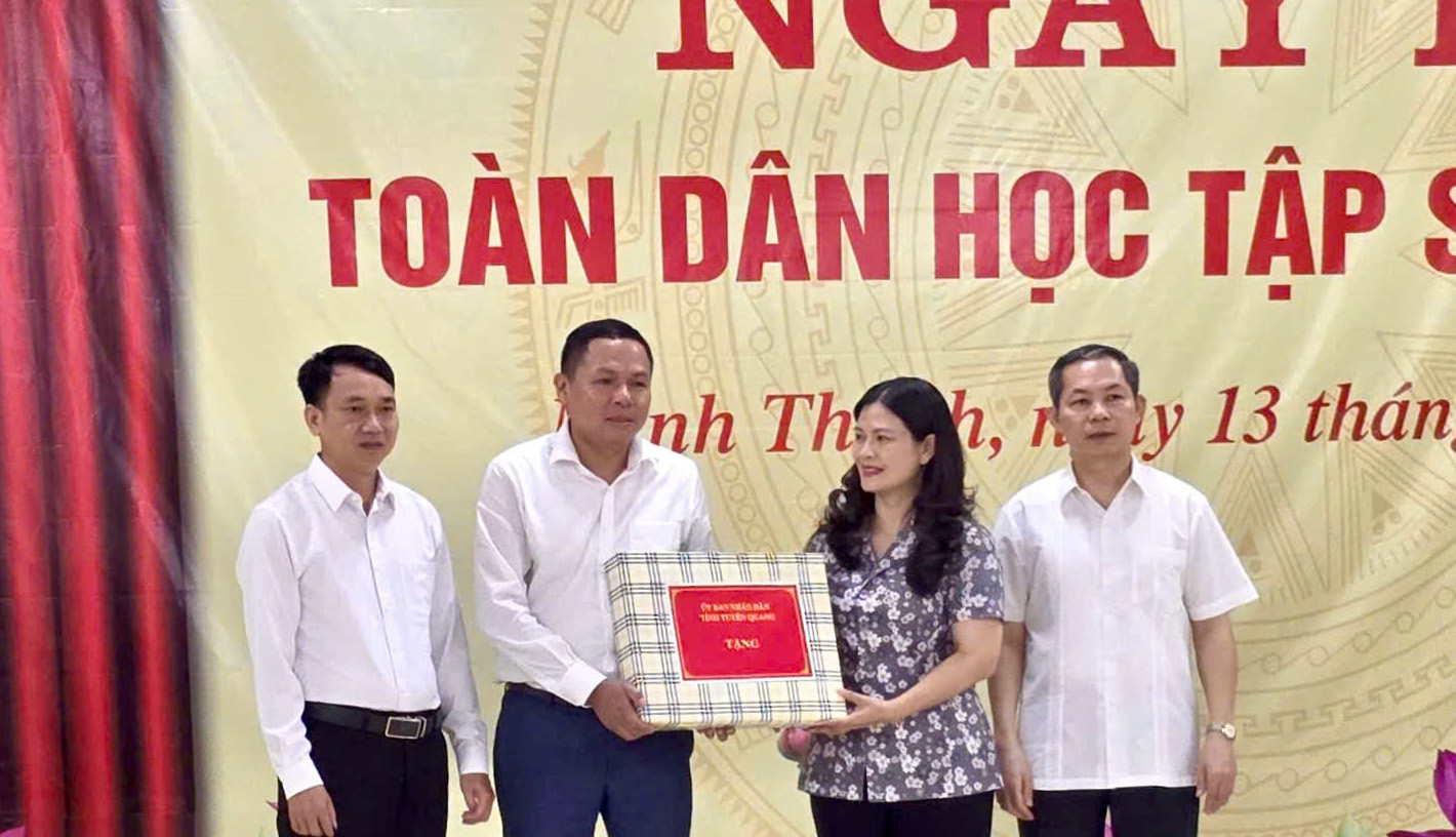 Nhân dịp này, Phó Chủ tịch UBND tỉnh Vương Ngọc Hà đã trao tặng thiết bị công nghệ cho Trung tâm Phục vụ hành chính công xã Minh Thanh, khích lệ tinh thần làm việc và phục vụ người dân tại cơ sở. Đồng thời, Sở Khoa học và Công nghệ, Viettel Tuyên Quang và Viễn thông Tuyên Quang đã trao 12 suất quà (mỗi suất 1 triệu đồng) hỗ trợ các hộ gia đình có hoàn cảnh khó khăn bị ảnh hưởng bởi bão số 10.