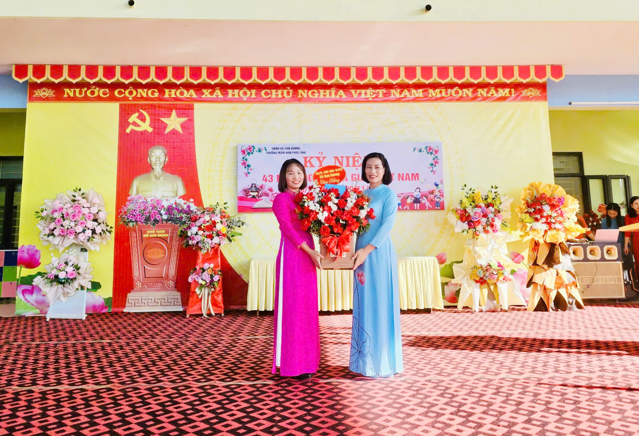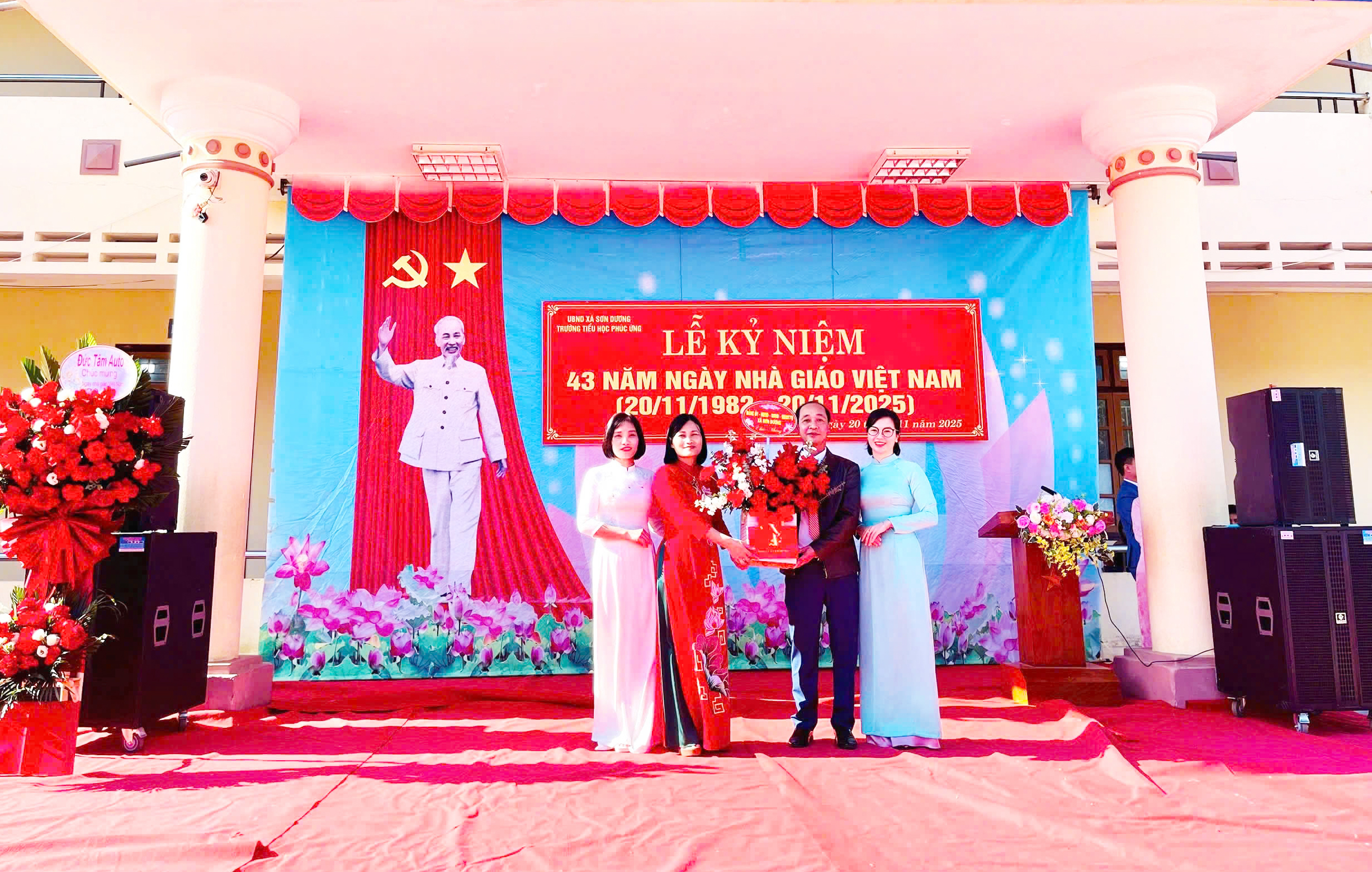 Cùng thời điểm, tại Trường Mầm non Phúc Ứng, đồng chí Lương Thị Uyên, Ủy viên BTV Đảng ủy, Phó Chủ tịch UBND xã đến dự và tặng hoa chúc mừng tập thể các cô giáo mầm non. Đây là sự ghi nhận đối với những đóng góp thầm lặng của đội ngũ nhà giáo ở bậc học đầu tiên.