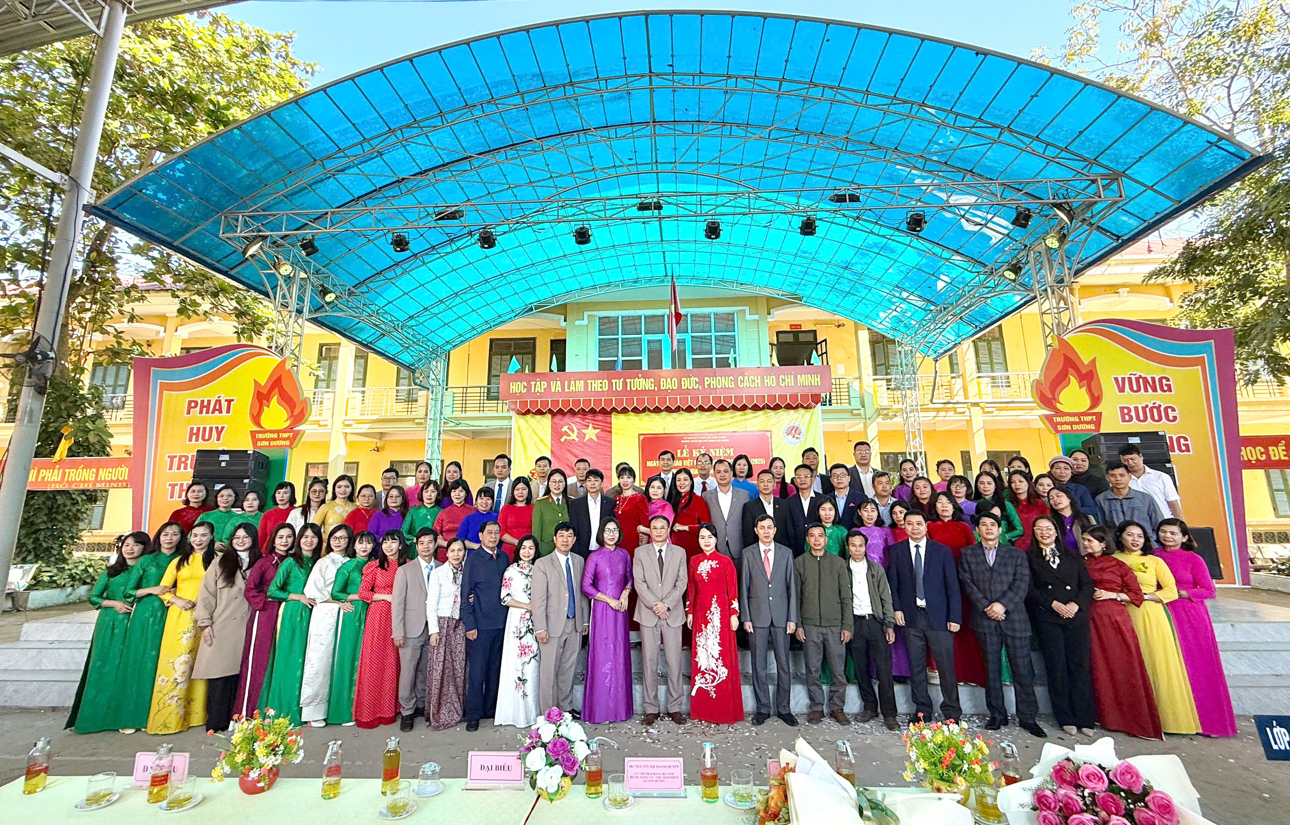 Tại Trường THPT Sơn Dương, đồng chí Nguyễn Thị Thanh Huyền, Ủy viên Ban Chấp hành Đảng bộ tỉnh, Bí thư Đảng ủy, Chủ tịch HĐND xã đến dự và trao tặng lẵng hoa tươi thắm chúc mừng nhà trường, thể hiện sự quan tâm của cấp ủy, chính quyền địa phương đối với công tác giáo dục bậc THPT và những nỗ lực của nhà trường trong thời gian qua.