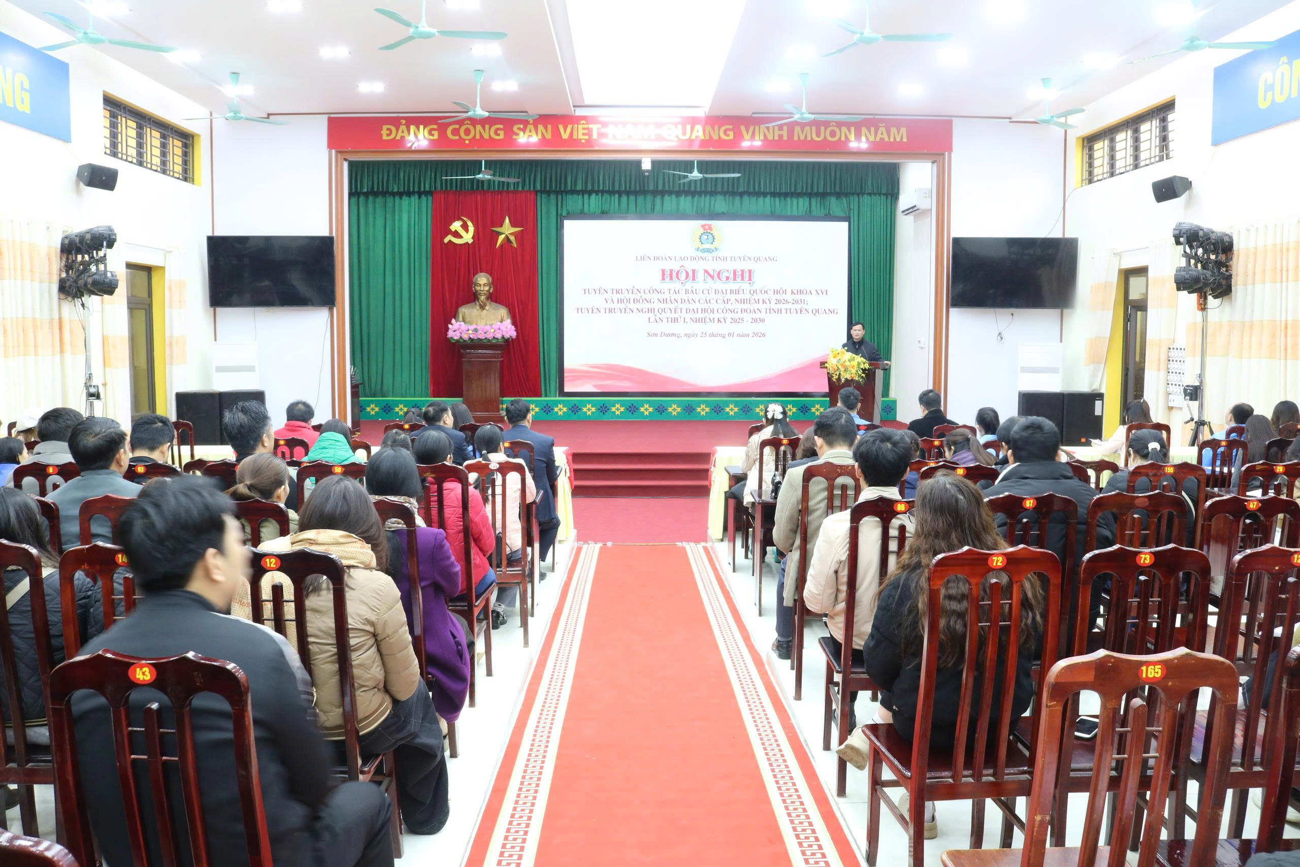 Cũng tại hội nghị, Nghị quyết Đại hội Công đoàn tỉnh Tuyên Quang nhiệm kỳ mới được tuyên truyền sâu rộng với những nội dung trọng tâm, các chỉ tiêu, nhiệm vụ và giải pháp chủ yếu của tổ chức Công đoàn trong thời gian tới, nhất là các chương trình chăm lo, bảo vệ quyền, lợi ích hợp pháp, chính đáng của đoàn viên, người lao động.