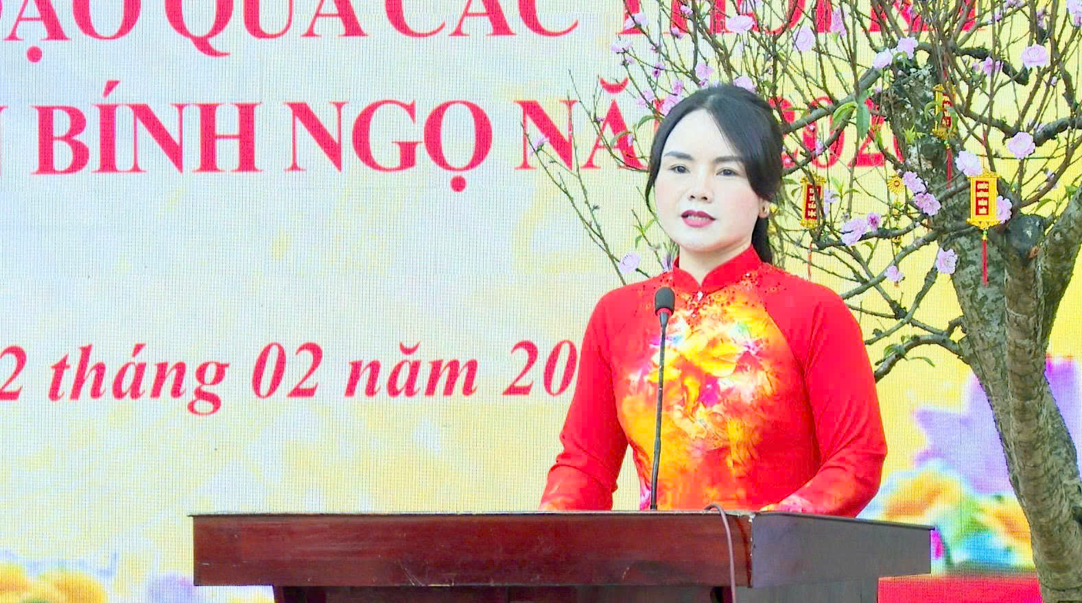 Đồng chí Bí thư Đảng ủy xã Nguyễn Thị Thanh Huyền phát biểu tại hội nghị.