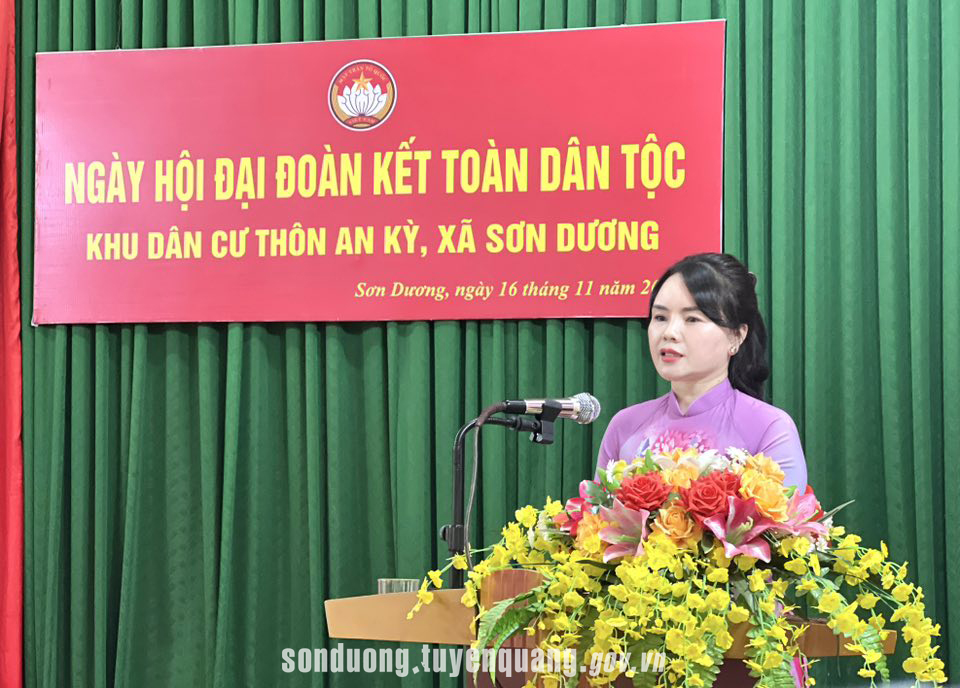 Phát biểu tại Ngày hội, đồng chí Nguyễn Thị Thanh Huyền ghi nhận những kết quả nổi bật mà cán bộ và nhân dân khu dân cư An Kỳ đã đạt được trong thời gian qua. Đồng chí khẳng định, dưới sự lãnh đạo của Chi bộ và sự vào cuộc tích cực của Ban công tác Mặt trận, các phong trào thi đua yêu nước, các cuộc vận động đã được triển khai đồng bộ, hiệu quả; đời sống vật chất và tinh thần của nhân dân ngày càng được nâng lên; cảnh quan nông thôn có nhiều đổi mới khởi sắc. Những kết quả hôm nay chính là minh chứng rõ nét cho sức mạnh của khối đại đoàn kết toàn dân - một truyền thống quý báu, là động lực để An Kỳ tiếp tục phát triển bền vững.