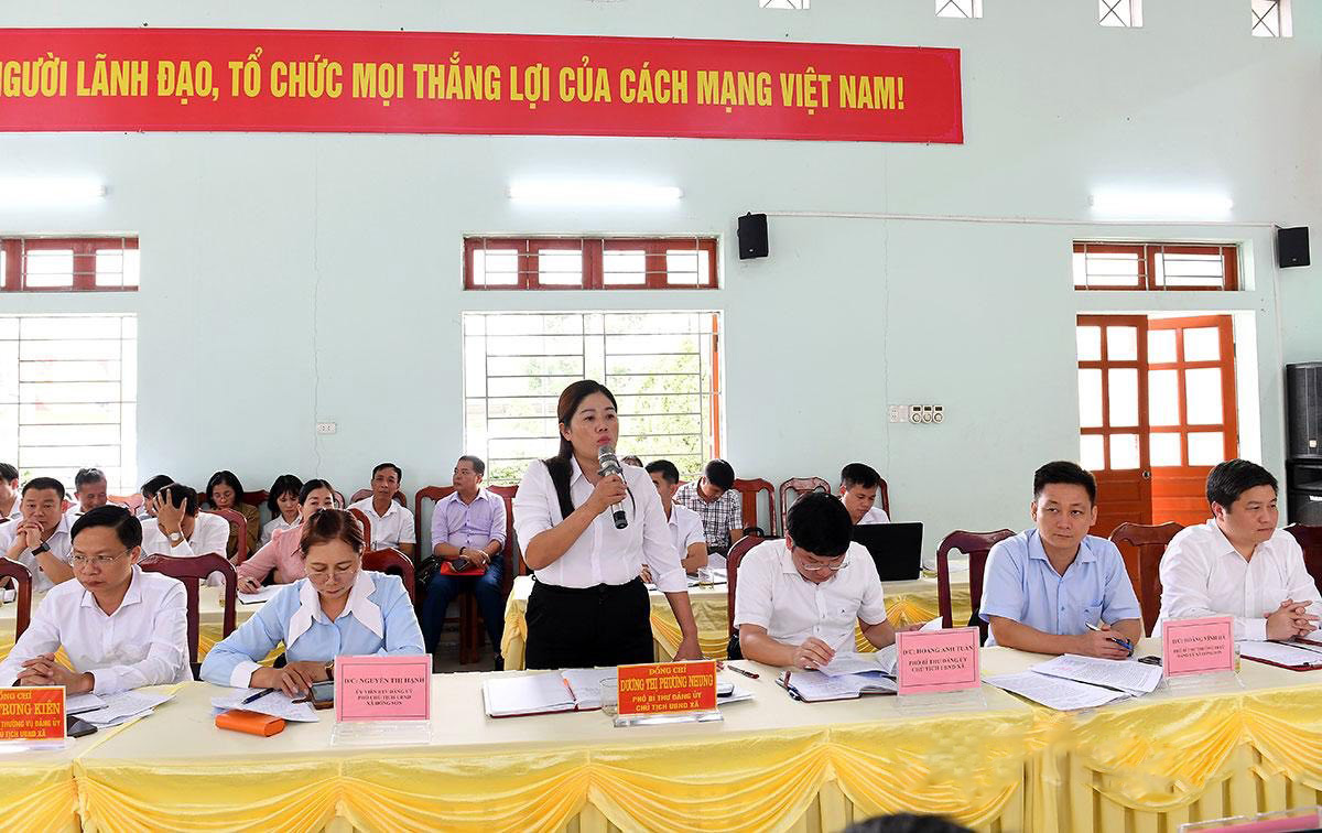Lãnh đạo UBND xã Trường Sinh báo cáo công tác quản lý nhà nước trong lĩnh vực văn hóa - xã hội trên địa bàn.