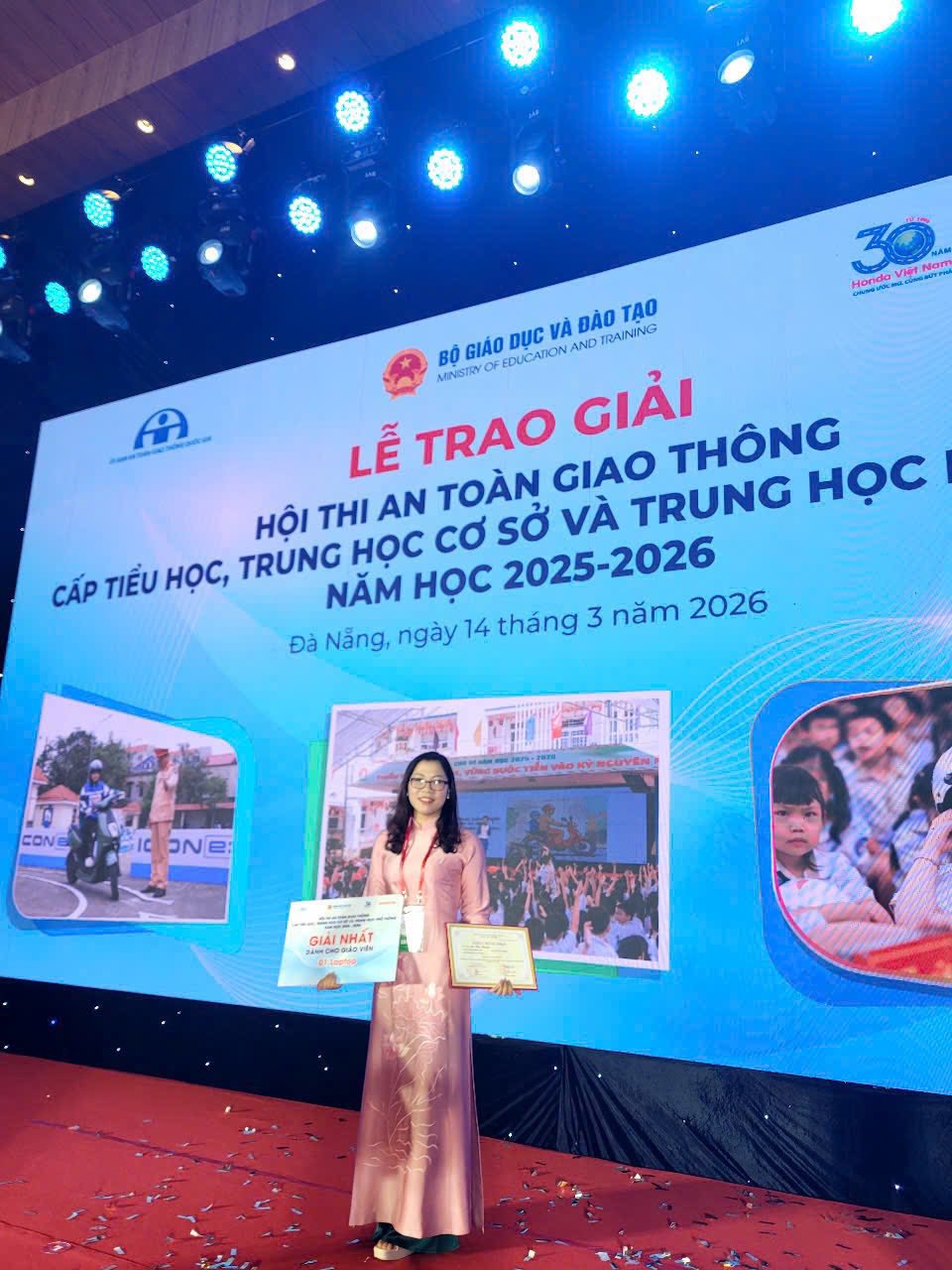 Tại cuộc thi năm nay, xã Sơn Dương vinh dự có 1 giáo viên đạt Giải Nhất cấp toàn quốc, đó là cô giáo Lê Thị Hạnh - giáo viên Trường Tiểu học Đăng Châu. Kết quả này là sự ghi nhận cho những nỗ lực, tâm huyết của cô giáo trong việc nghiên cứu, xây dựng bài giảng, sáng kiến và phương pháp giáo dục an toàn giao thông hiệu quả, phù hợp với học sinh tiểu học.