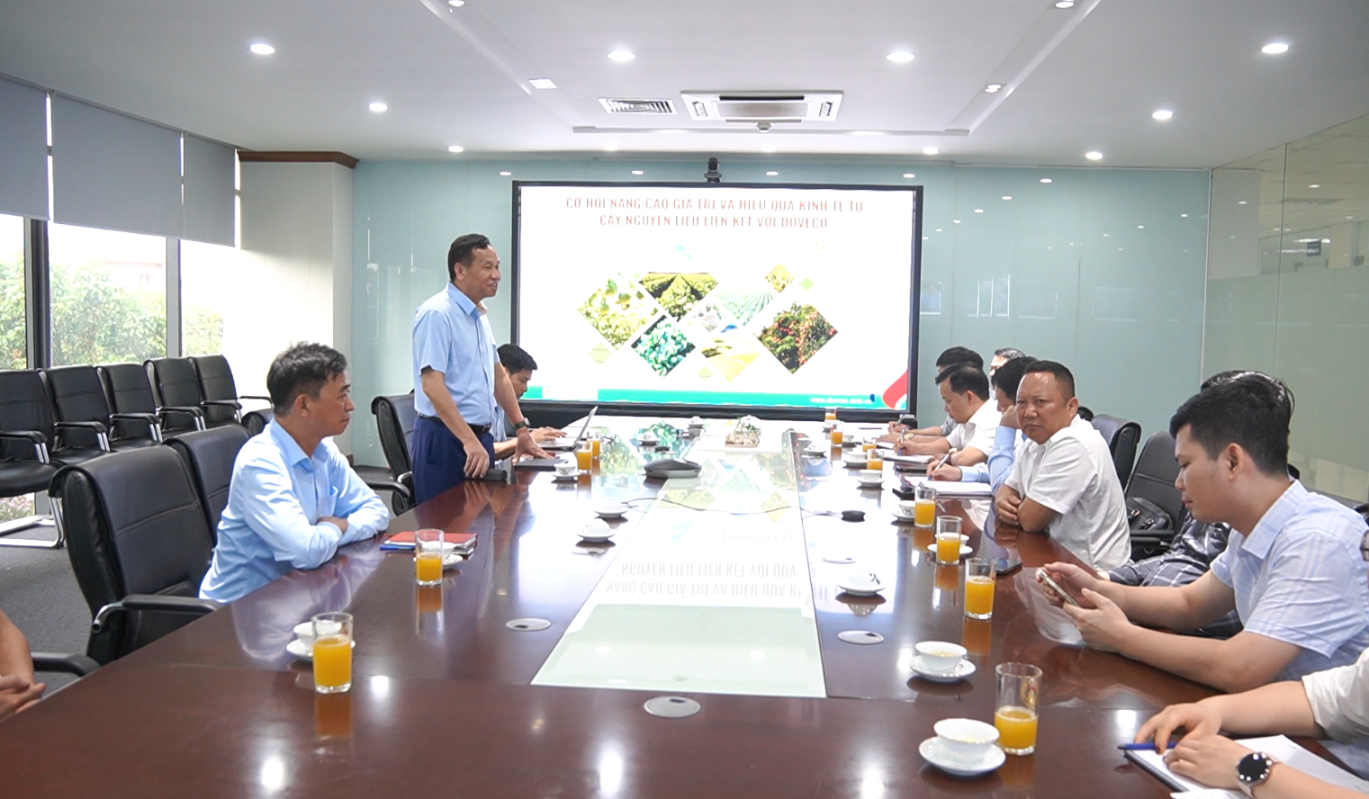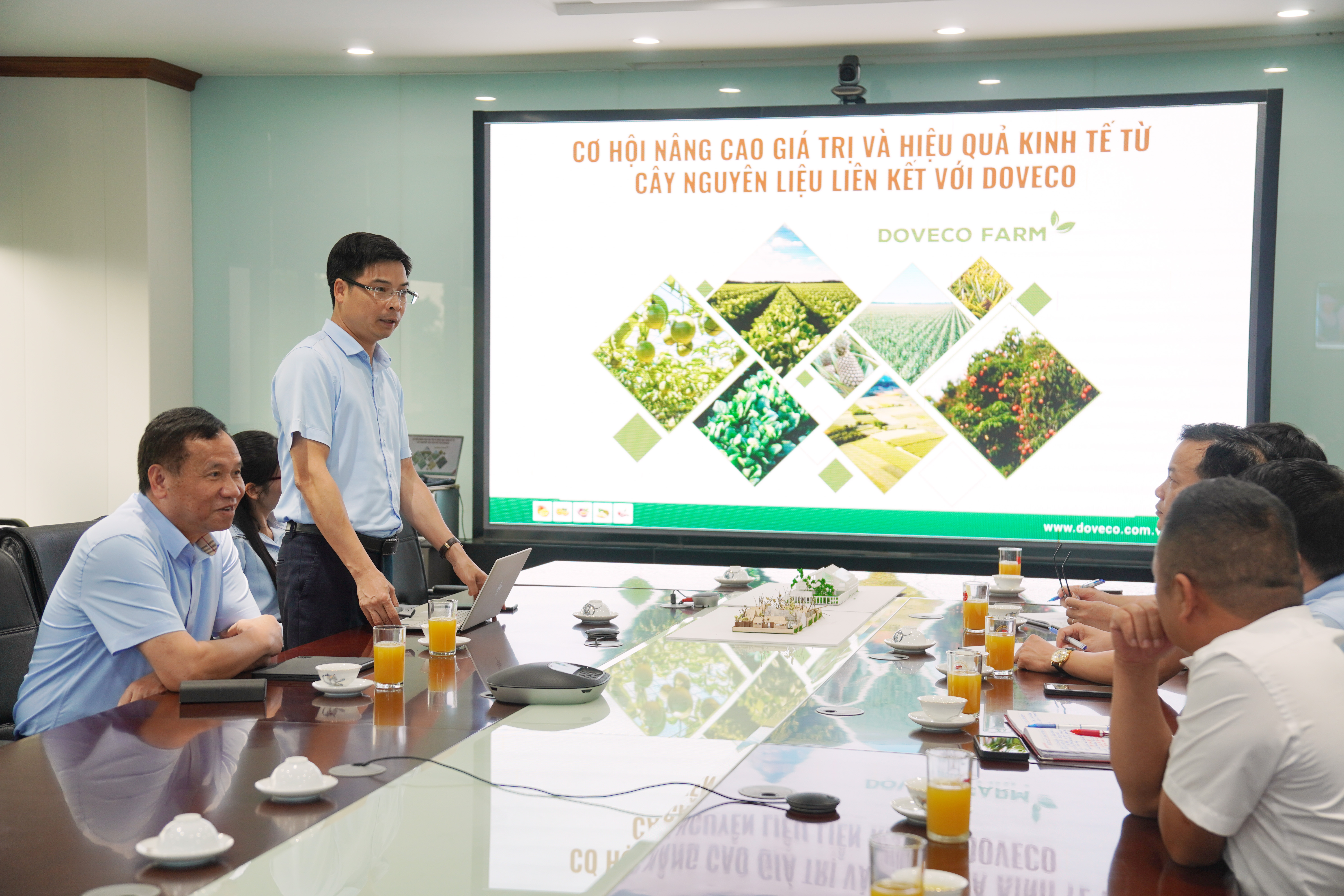 Đoàn công tác xã Sơn Dương làm việc với Công ty Cổ phần Thực phẩm xuất khẩu Đồng Giao (DOVECO)