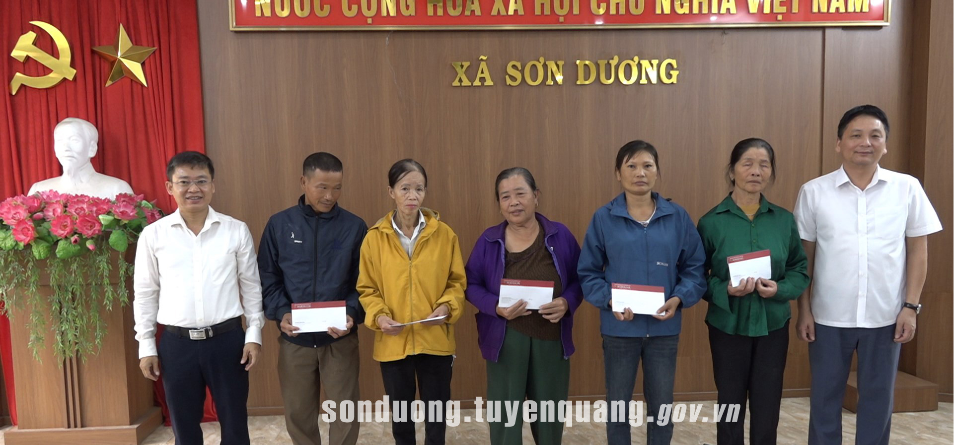 Tại chương trình, đại diện Ngân hàng NN và PTNT chi nhánh Sơn Dương Tuyên Quang đã trao 5 suất quà hỗ trợ cho 5 hộ nghèo, hộ có hoàn cảnh đặc biệt khó khăn bị ảnh hưởng nặng nề bởi hoàn lưu bão số 10 và số 11, mỗi suất quà trị giá 2.000.000 đồng.