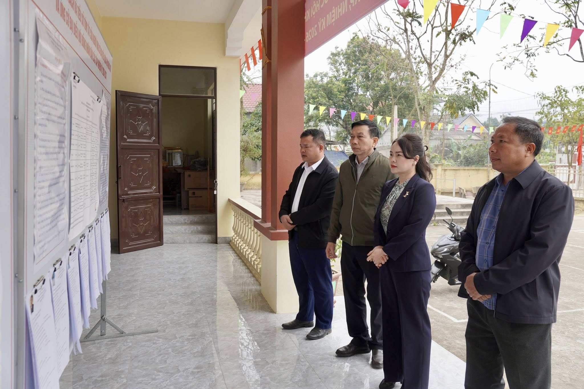 Tại các điểm đến kiểm tra, đồng chí Bí thư Đảng ủy xã đã trực tiếp nắm tình hình công tác chuẩn bị bầu cử như: việc thành lập các tổ bầu cử, rà soát và niêm yết danh sách cử tri, chuẩn bị cơ sở vật chất, địa điểm bỏ phiếu, trang trí khánh tiết, công tác bảo đảm an ninh trật tự trước, trong và sau ngày bầu cử. Đồng thời kiểm tra việc bố trí khu vực bỏ phiếu, phương án dự phòng nhằm bảo đảm cuộc bầu cử diễn ra đúng quy định, dân chủ, an toàn và tiết kiệm.