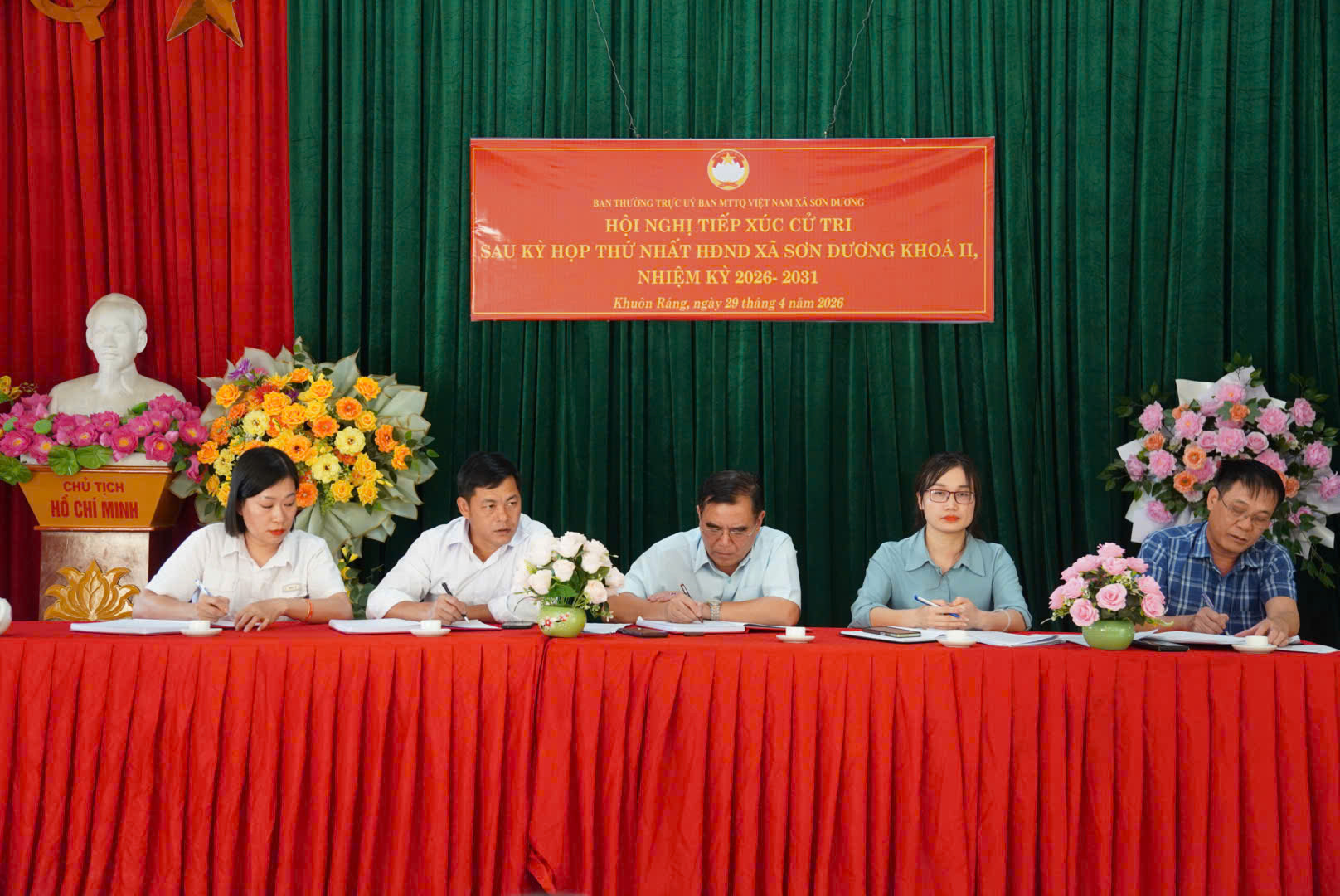 Tham dự buổi tiếp xúc có các đại biểu HĐND xã thuộc Tổ số 6 gồm: Bà Phạm Thu Trang – Ủy viên Ban Chấp hành Đảng bộ xã, Chánh Văn phòng HĐND và UBND xã; Ông Triệu Công Đoàn – Trưởng Trạm Y tế xã Sơn Dương; Ông Nguyễn Hồng Thái – Bí thư Chi bộ, Chủ tịch Hội Thể dục thể thao, Giám đốc Công ty TNHH Lâm nghiệp Sơn Dương; Ông Vũ Văn Quyền – Bí thư Chi bộ, Trưởng thôn Đồng Lực; Bà Trương Thị Ngoan – Chi hội trưởng Chi hội Phụ nữ thôn Định Chung. Cùng dự có đại diện lãnh đạo các cơ quan, đơn vị và đông đảo cử tri thôn Khuân Ráng, Phúc Vượng, Vĩnh Phúc, Định Chung, Hang Hút, Liên Thành, Đá Cả, Đá Ngựa, Phúc Lợi, Đồng Luộc, Minh Lệnh, Phương Cẩm, Liên Phương, Phú Lộc.