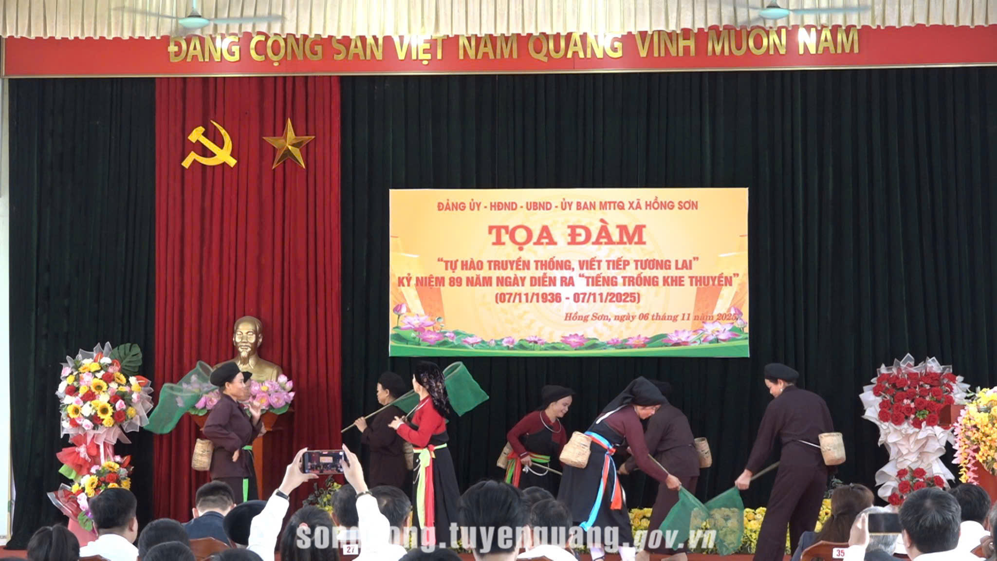 Tại buổi Toạ đàm, các đại biểu đã tập trung làm rõ giá trị lịch sử của “Tiếng trống Khe Thuyền”. Dưới chế độ phong kiến, thôn Khe Thuyền thuộc tổng Đồng Văn, phủ Đoan Hùng, chấn Sơn Tây, bao gồm 4 bản là: Khe Thuyền, Giếng Bọc, Gò Kiêu và Đồng Mụng. Năm 1884, thực dân Pháp đánh chiếm Tuyên Quang, xã Khe Thuyền bị đặt dưới ách cai trị hà khắc của thực dân, phong kiến. Nhân dân phải làm thuê với tiền công rẻ mạt và thường xuyên bị chúng đánh đập, bóc lột, quỵt công, đồng thời còn phải gánh chịu chế độ thuế khoá hết sức nặng nề với nhiều loại thuế khác nhau như: Thuế thân, thuế điền, thuế thổ trạch...