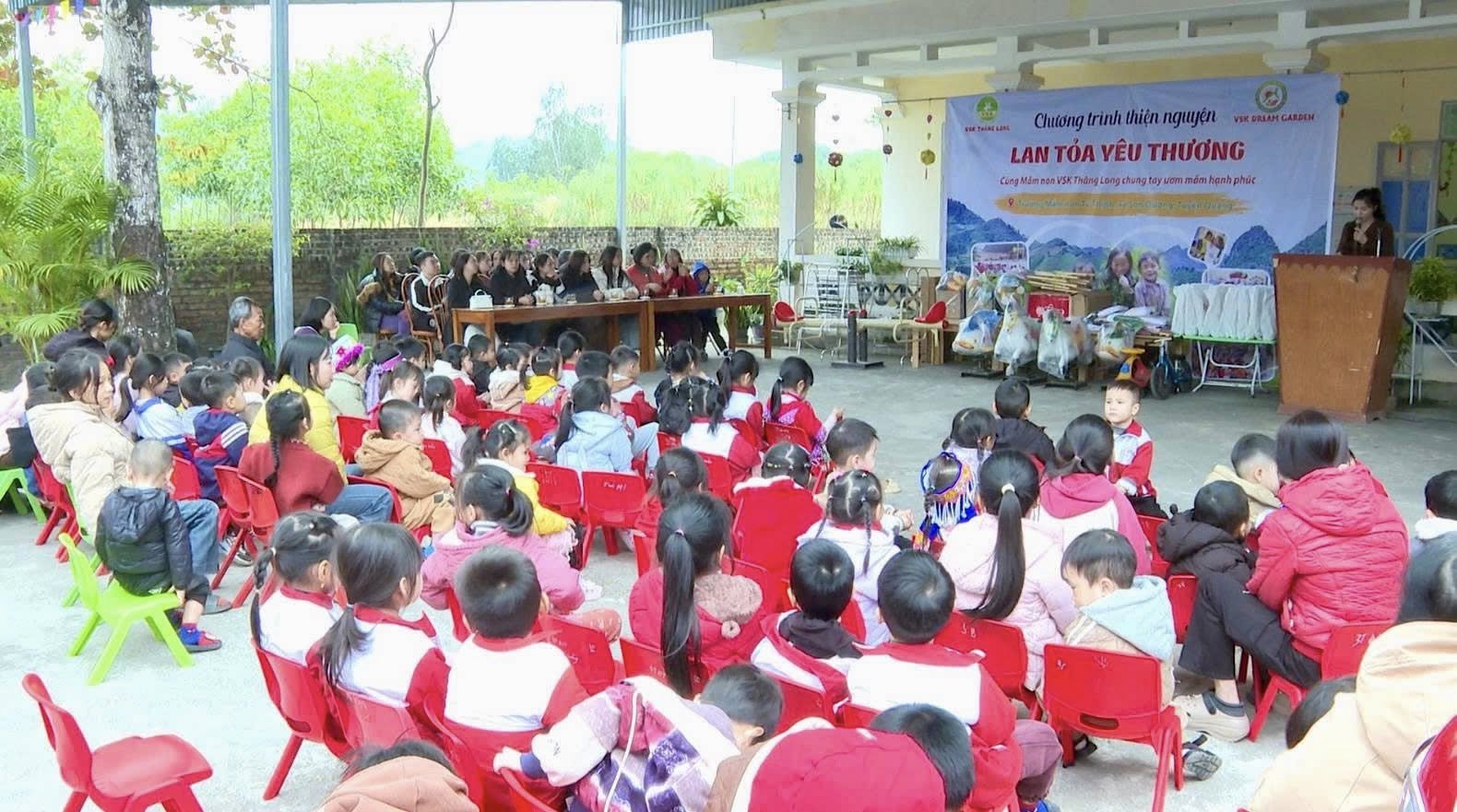 Phát biểu tại chương trình, đồng chí Lương Thị Uyên – Ủy viên Ban Thường vụ Đảng ủy, Phó Chủ tịch UBND xã Sơn Dương bày tỏ sự xúc động và trân trọng cảm ơn tình cảm, sự quan tâm, sẻ chia đầy ý nghĩa của Trường Mầm non VSK Thăng Long và Trường Mầm non VSK Dream Garden đã dành cho Trường Mầm non Tú Thịnh và các cháu học sinh. Đồng chí nhấn mạnh, những phần quà tuy giá trị vật chất không quá lớn nhưng chứa đựng tình cảm, trách nhiệm và tinh thần nhân ái sâu sắc, góp phần cải thiện điều kiện dạy và học, đồng thời động viên kịp thời các cháu học sinh vùng còn nhiều khó khăn.
