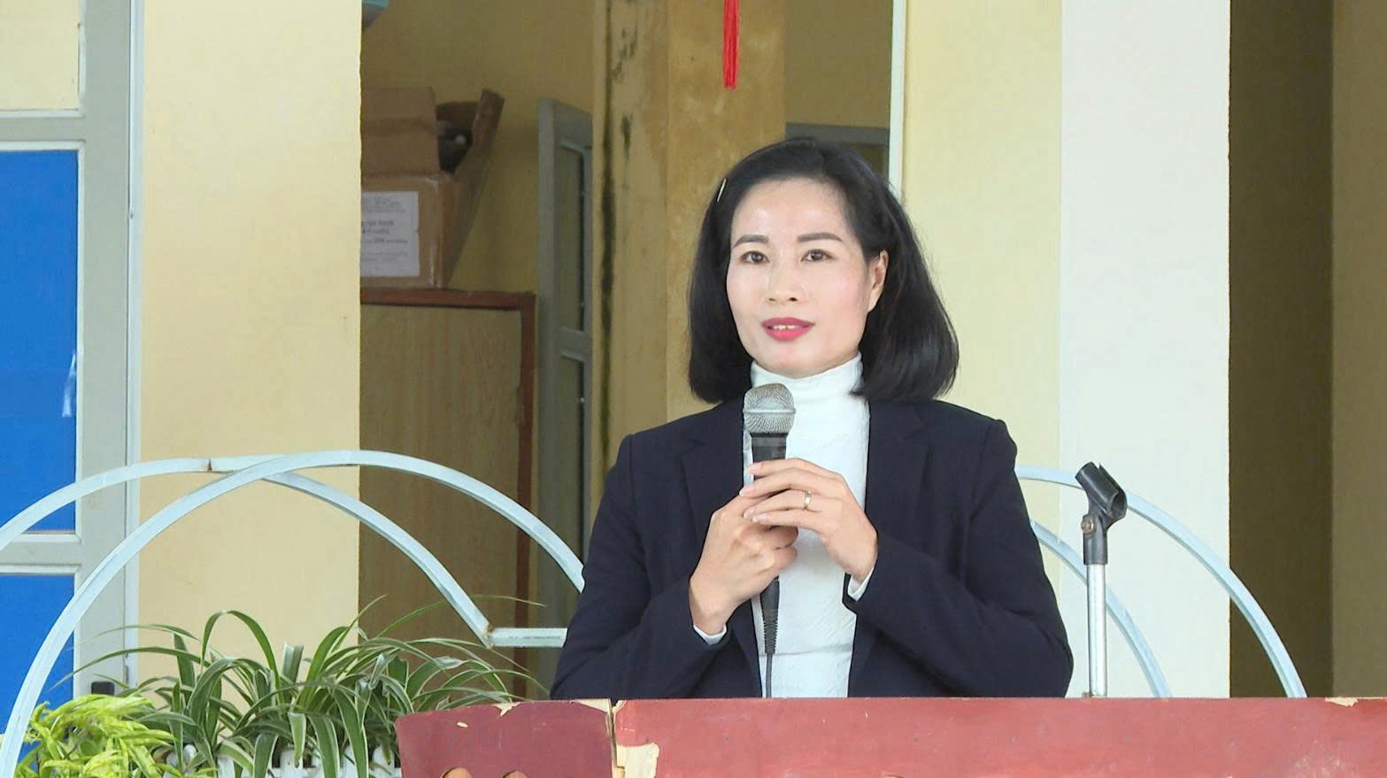 Đồng chí Phó Chủ tịch UBND xã Lương Thị Uyên phát biểu tại buổi trao quà.