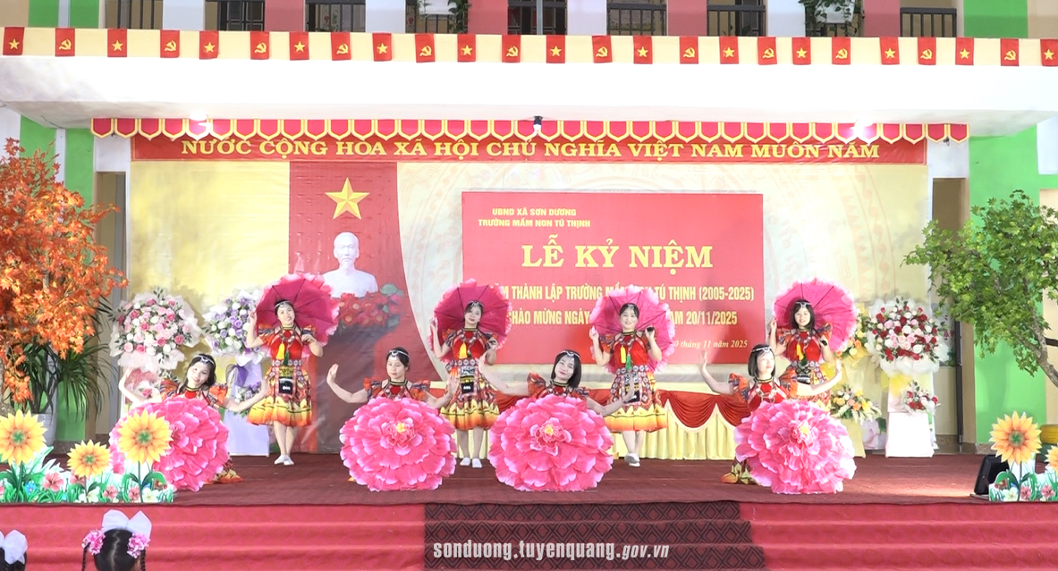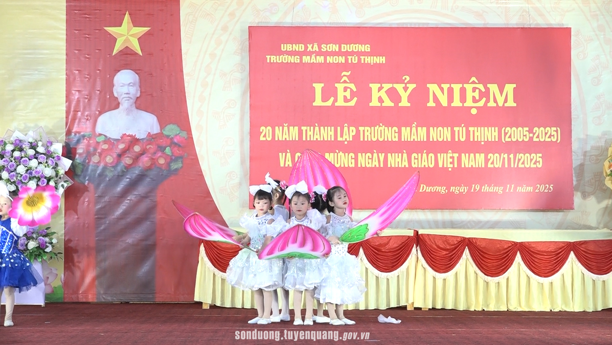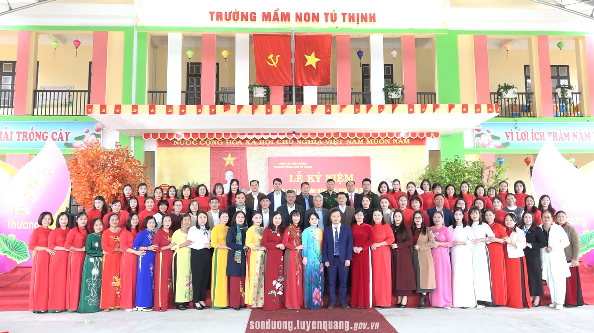Đảng ủy - HĐND - UBND - Ủy ban MTTQ Việt Nam xã Sơn Dương tặng hoa chúc mừng tập thể cán bộ giáo viên, nhân viên Trường Mầm non Tú Thịnh.