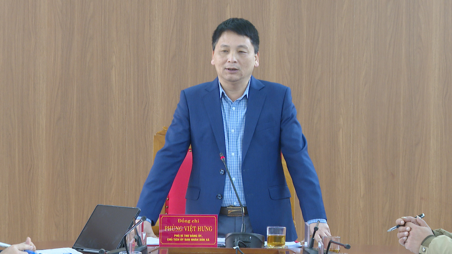 Đồng chí Phùng Việt Hưng, Phó Bí thư Đảng ủy, Chủ tịch UBND xã phát biểu kết luận cuộc họp