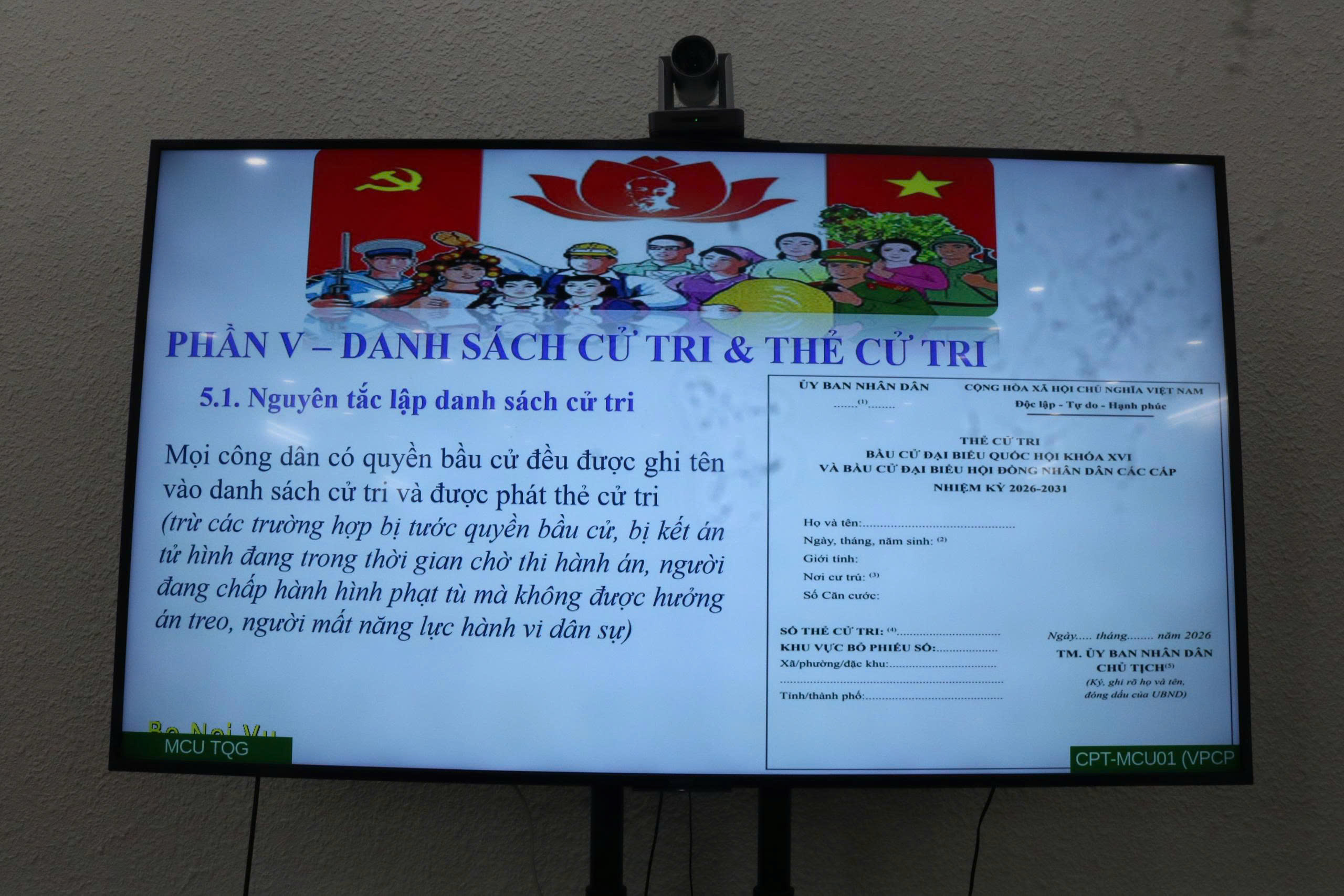 Tại hội nghị, các đại biểu được quán triệt những nội dung trọng tâm về nghiệp vụ công tác bầu cử đại biểu Quốc hội khóa XVI và đại biểu Hội đồng nhân dân các cấp nhiệm kỳ 2026 - 2031; hướng dẫn chi tiết về quy trình, trình tự, thủ tục tổ chức bầu cử; những điểm mới trong các văn bản chỉ đạo, quy định pháp luật liên quan đến công tác bầu cử, nhằm bảo đảm cuộc bầu cử được tiến hành đúng luật, dân chủ, công khai, minh bạch và an toàn.