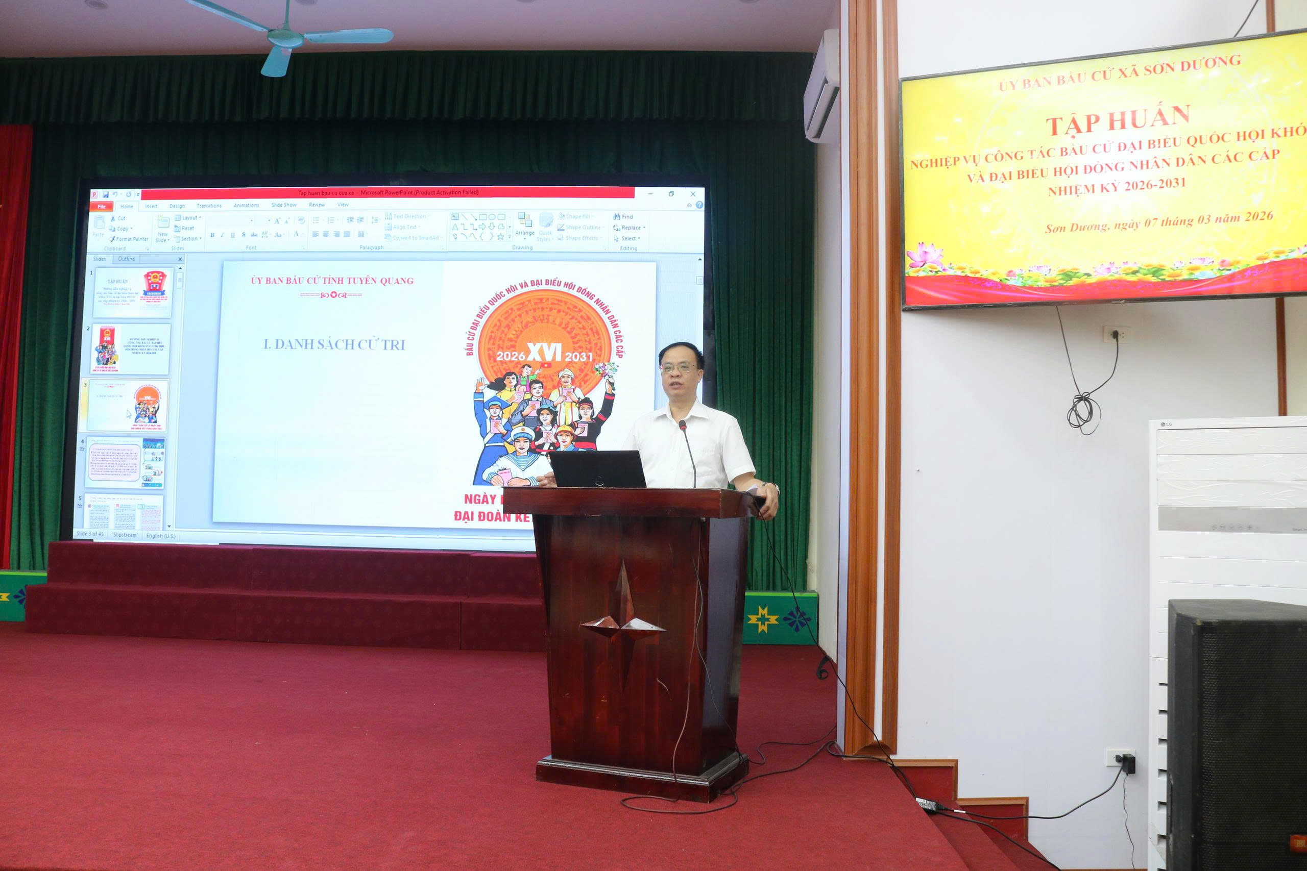 Hội nghị tập huấn là hoạt động quan trọng nhằm chuẩn bị tốt các điều kiện cần thiết, góp phần tổ chức thành công cuộc bầu cử đại biểu Quốc hội khóa XVI và đại biểu Hội đồng nhân dân các cấp nhiệm kỳ 2026 - 2031 trên địa bàn xã Sơn Dương, đảm bảo dân chủ, đúng luật và an toàn.