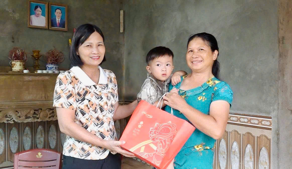 Đồng chí Phó Bí thư Thường trực Đảng ủy xã Sơn Dương thăm hỏi, tặng quà các cháu thiếu nhi có hoàn cảnh khó khăn nhân dịp Tết Trung thu