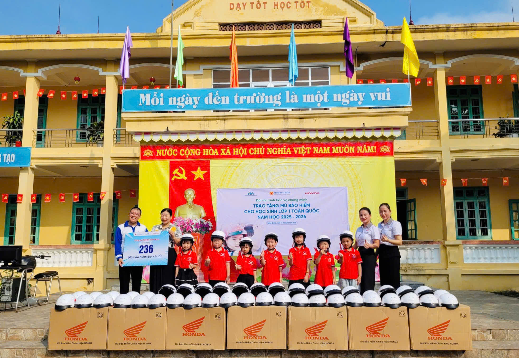 HEAD Linh Lực 3 Sơn Dương - đại diện Công ty Honda Việt Nam tổ chức chương trình “Trao tặng mũ bảo hiểm cho học sinh lớp 1 toàn quốc năm học 202-2026” tại Trường Tiểu học Đăng Châu, xã Sơn Dương.